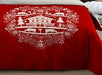 Cover de duvet o Funda nórdica, elaborada en 100% Algodón. El diseño destaca por un gran motivo central en forma de corona decorativa, que enmarca un tradicional chalet alpino rodeado de árboles y detalles navideños. Los tonos rojo intenso y blanco crean un contraste elegante y cálido, ideal para la temporada. Fundas reversibles con fondo blanco y rojo.