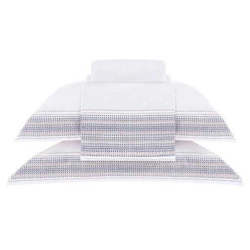 KaloshLa Colección Gavin es una composición de colores que resalta su diseño refinado, moldura texturizada en azul profundo en el borde de la sábana sup...