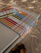 Reverso: Mantiene el mismo estilo de franjas verticales multicolor, pero con una distribución ligeramente más suave y uniforme, logrando un look más equilibrado. Los flecos en ambos extremos complementan el diseño con un toque artesanal.