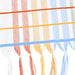 Frente: Diseño vibrante con franjas verticales en tonos naranja, azul, verde y rojo sobre un fondo claro. Las líneas están dispuestas con diferentes grosores, creando un efecto dinámico y moderno. En los extremos, presenta detalles horizontales a juego que aportan un acabado más elaborado.